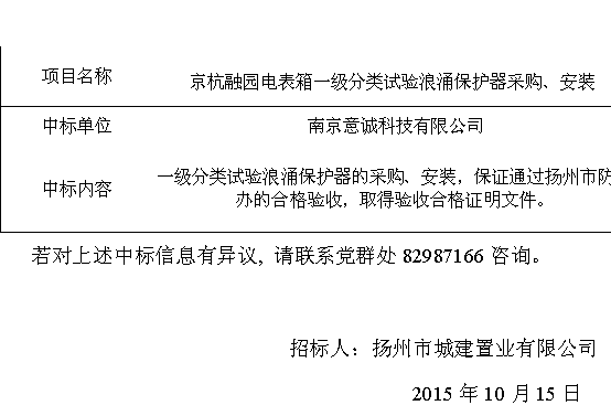 城建置業(yè)中標(biāo)信息公示