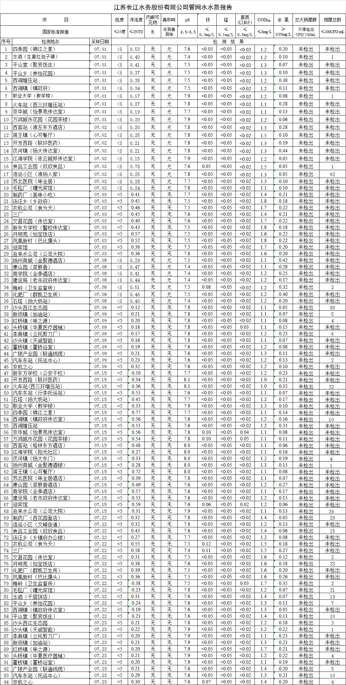 江蘇長(zhǎng)江水務(wù)股份有限公司管網(wǎng)水水質(zhì)報(bào)告(2019年7月)