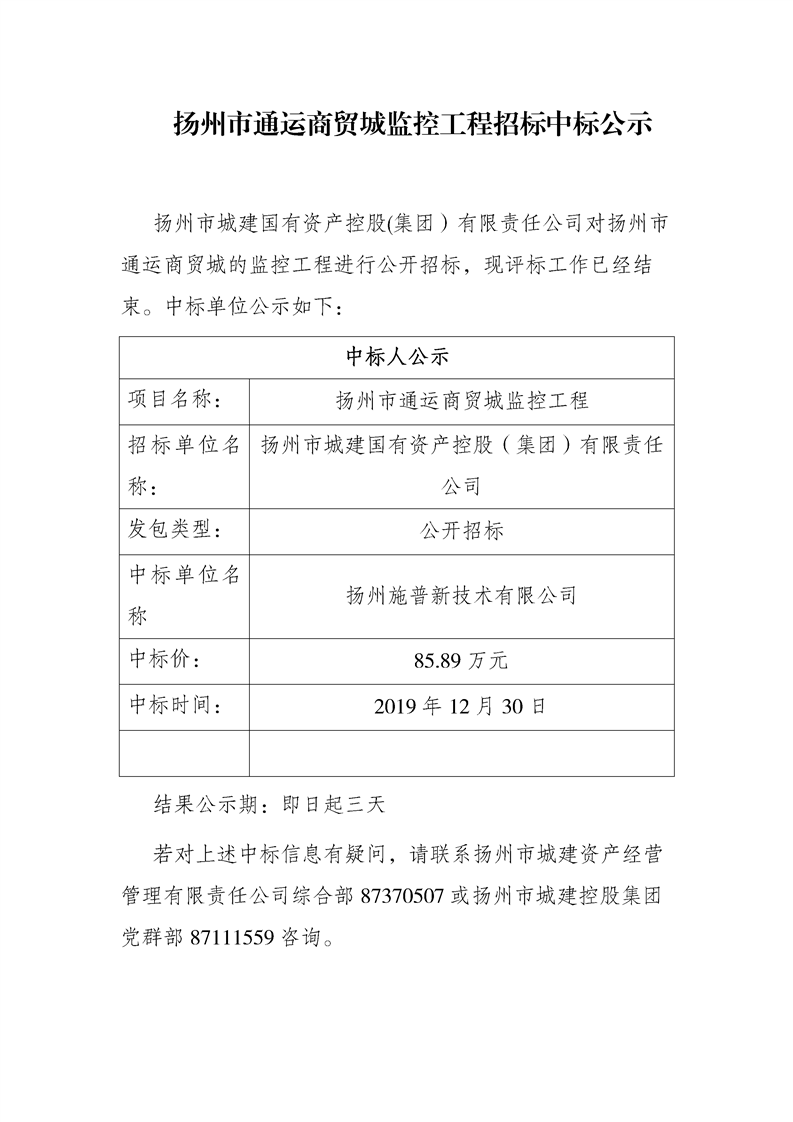 單位名稱: 揚州市城建國有資產(chǎn)控股(集團)有限責(zé)任公司