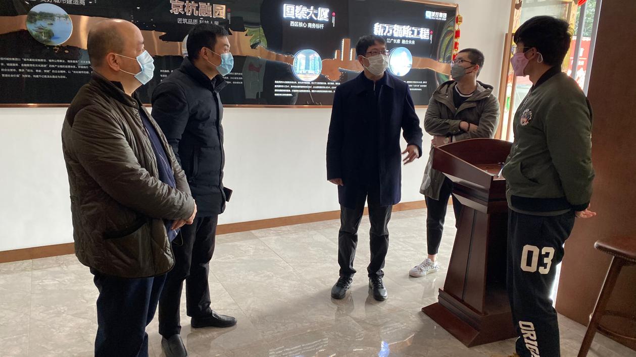 2月24日上午,城控集團(tuán)副總經(jīng)理方璇智帶隊赴置業(yè)公司九境融園項目部、九境融園售樓處、頤和醫(yī)療健康中心項目部,督查建筑工地復(fù)工、疫情防控和安全生產(chǎn)工作。