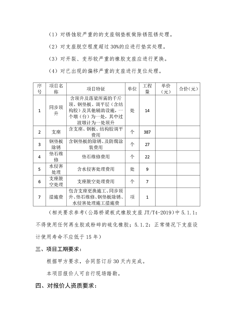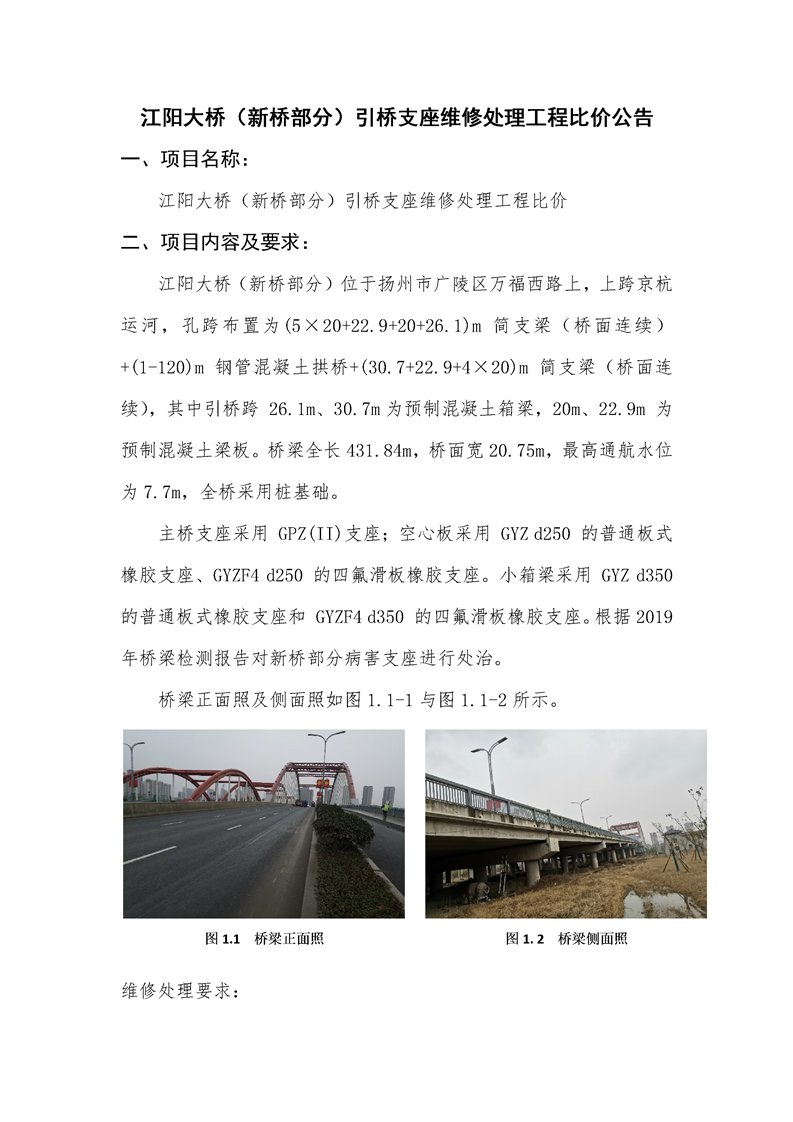 江陽大橋(新橋部分)引橋支座維修處理工程比價(jià)文件.doc