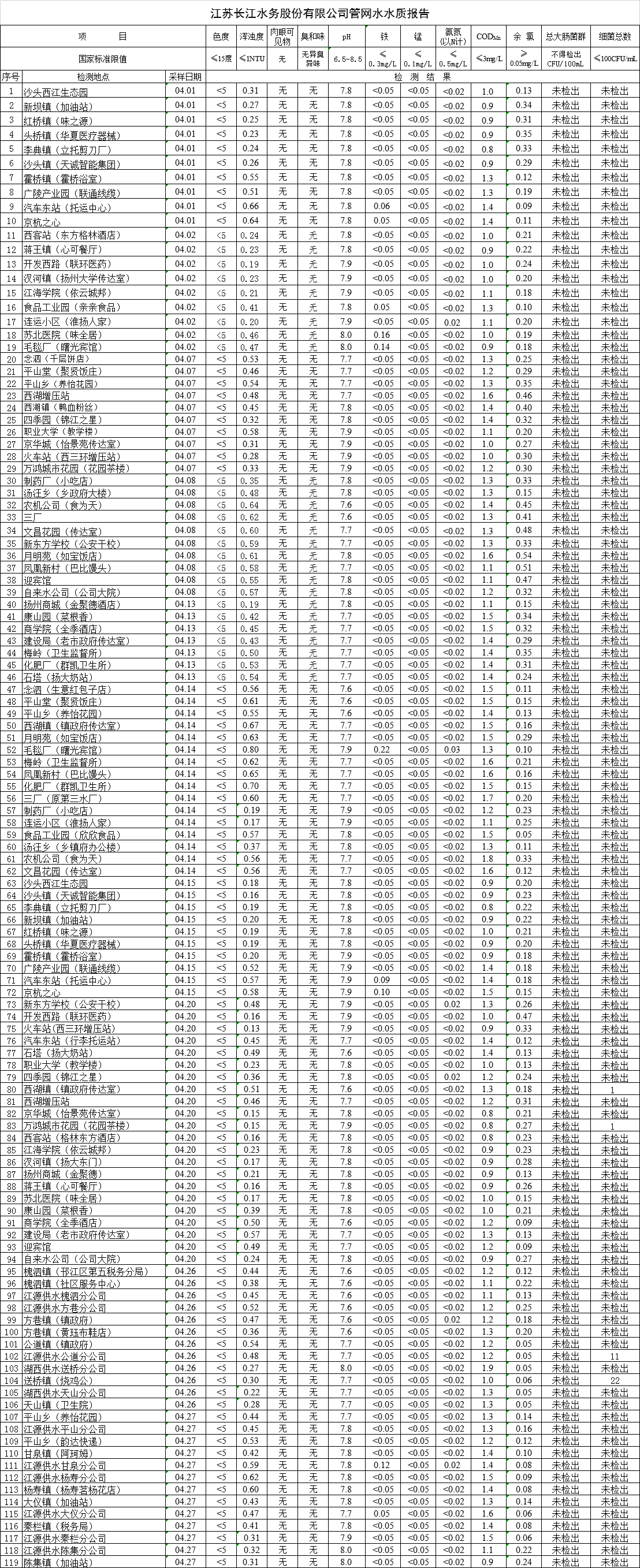 江蘇長(zhǎng)江水務(wù)股份有限公司管網(wǎng)水水質(zhì)報(bào)告(2020年4月)