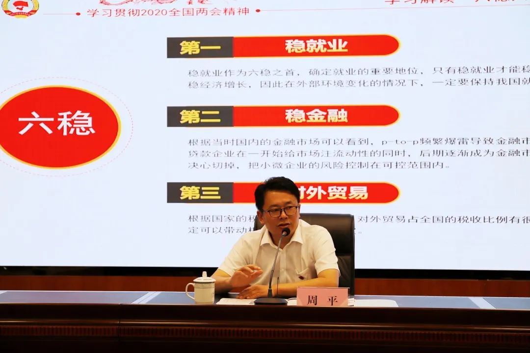 黨課從全國兩會為出發(fā)點,圍繞“六穩(wěn)”“六?!眮碇v述政府的工作重心和工作重點的轉變,指出面對嚴峻挑戰(zhàn)時,要堅持穩(wěn)中求進工作總基調,堅持新發(fā)展理念。