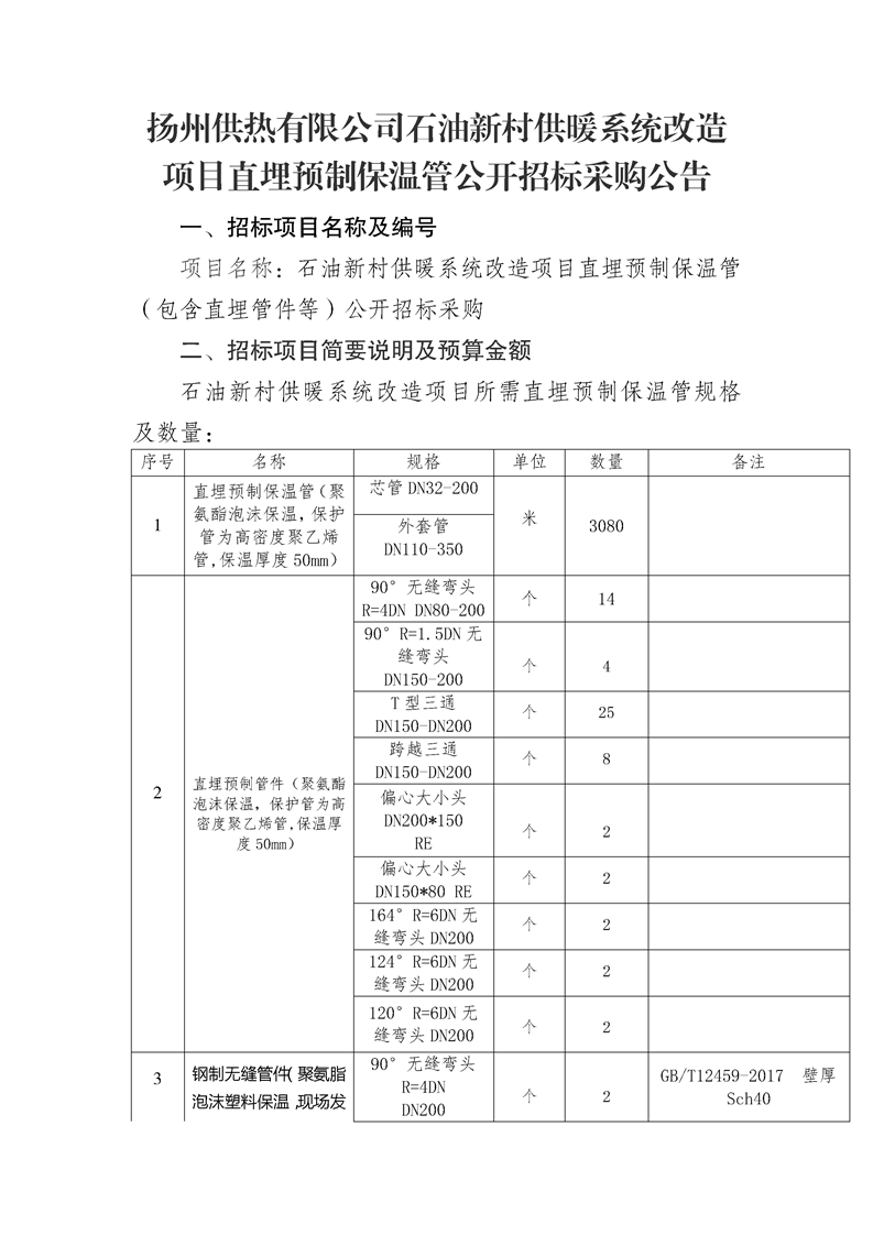 揚州供熱石油新村供暖系統(tǒng)改造直埋預(yù)制保溫管招標文件.docx