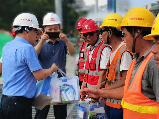 8月17日至8月20日,城控集團分九個小組,由領(lǐng)導班子成員分別帶隊到集團重點工程、民生項目現(xiàn)場和公用服務崗位,看望慰問奮戰(zhàn)在一線的勞動者,為他們送去清涼解暑用品,向奮戰(zhàn)在高溫一線的廣大干部職工致以崇高敬意和誠摯問候。