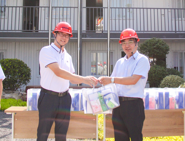 8月19日,總經(jīng)理夏正東一行來到湯汪污水處理廠,對廣大干部職工面對高溫酷暑,堅守崗位、持續(xù)奮戰(zhàn)的精神給予肯定,并送上防暑降溫物品。他指出,防暑降溫工作是夏季高溫作業(yè)的重中之重,一定要抓好夏季安全管理,在保證出水達標排放的前提下,合理優(yōu)化運行班次,確保一線工人健康安全。