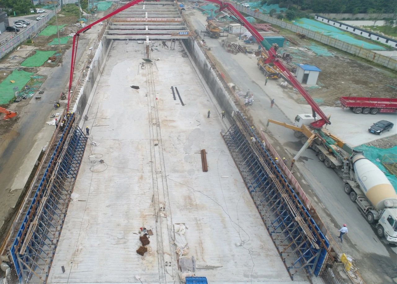 8月29日中午12:30,經(jīng)過近6小時(shí)的連續(xù)作業(yè),運(yùn)河南北路快速化改造工程文昌路隧道首塊側(cè)墻成功澆筑。