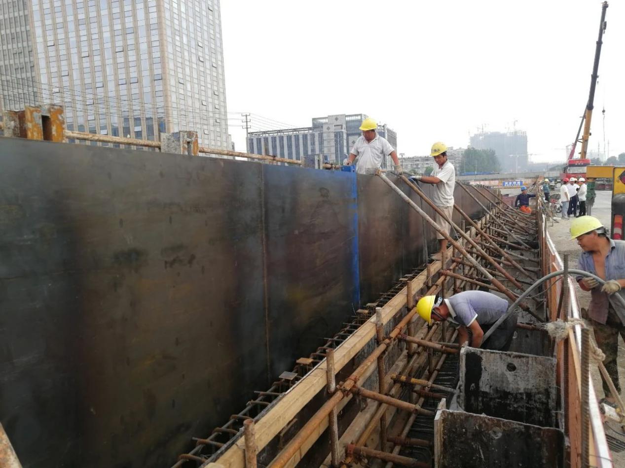 為了確保首段側(cè)墻順利澆筑,澆筑前,項(xiàng)目部多次邀請?jiān)O(shè)計(jì)方、建設(shè)方、施工方、監(jiān)理方相關(guān)人員對側(cè)墻預(yù)埋件及防水體系進(jìn)行研討優(yōu)化。澆筑中,嚴(yán)格控制混凝土振搗質(zhì)量、鋼筋加工及安裝施工質(zhì)量,強(qiáng)化安全措施,加強(qiáng)現(xiàn)場管理。同時(shí)針對側(cè)墻較高的特點(diǎn),提前支好預(yù)制的鋼側(cè)模,進(jìn)行分層澆筑,確保施工質(zhì)量。
