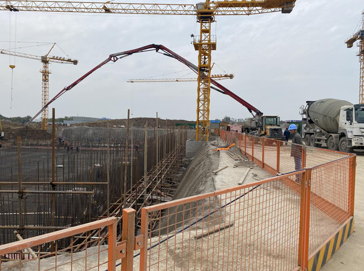 與此同時(shí)廠區(qū)內(nèi)施工人員正在加緊對(duì)二沉池、接觸消毒池、反硝化深床濾池等主體構(gòu)筑物的土方施工,生化池其余五個(gè)片區(qū)的土方、墊層施工也在有序進(jìn)行。北山一期工程第一塊大體積混凝土底板的順利澆筑,大大鼓舞了項(xiàng)目參建各方的士氣,預(yù)計(jì)本月底北山污水處理廠一期工程主體構(gòu)筑物土方施工工作將全部完成。