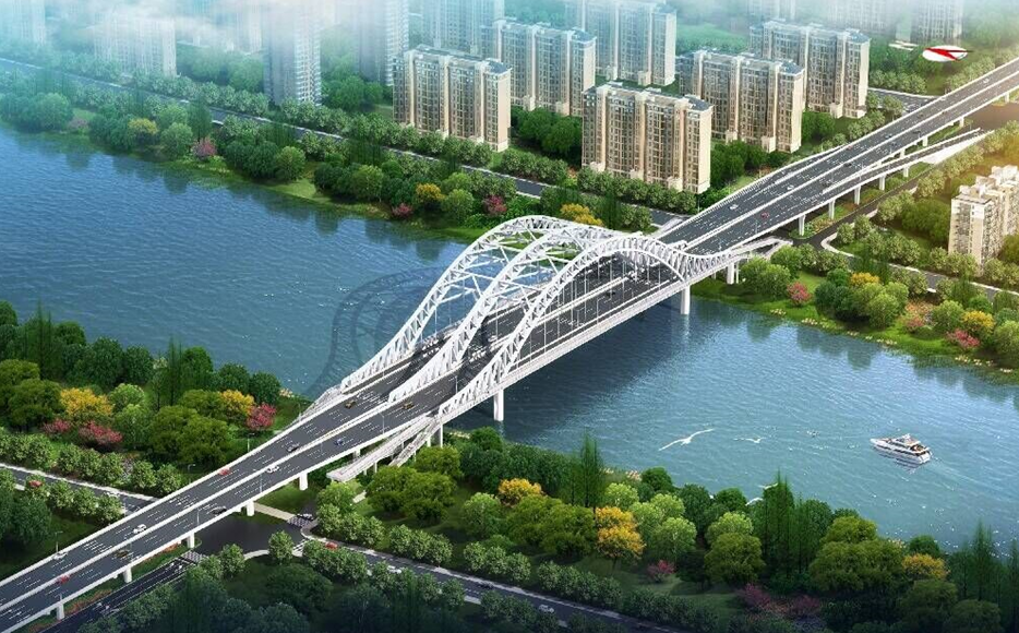 1月16日,萬??焖俾房缇┖歼\河大橋拱肋首節(jié)合龍段順利吊裝,大橋初現(xiàn)剛?cè)岵木阑【€造型。