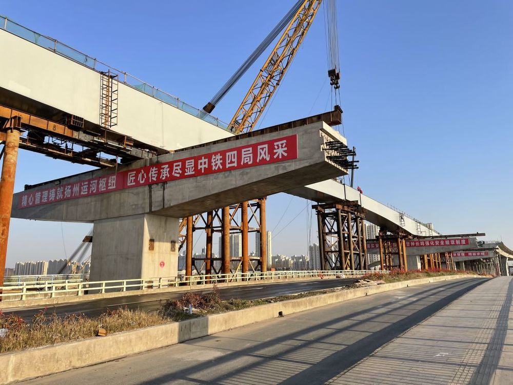 3月27日下午14點(diǎn)16分,運(yùn)河南北路快速化改造二期工程(萬福西路-物港路北)項(xiàng)目跨古運(yùn)河段夫差橋首聯(lián)鋼箱梁橫向頂推施工順利完成,標(biāo)志著工程取得了階段性勝利。
