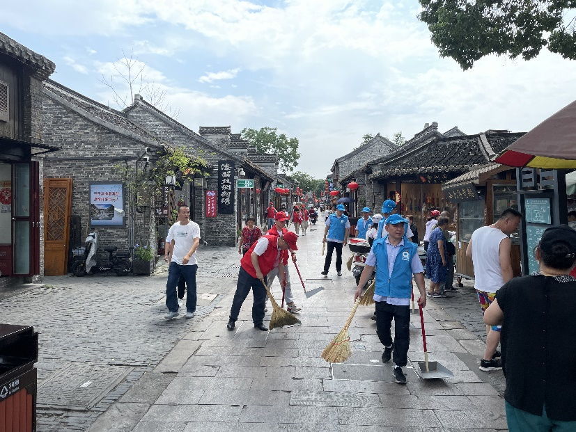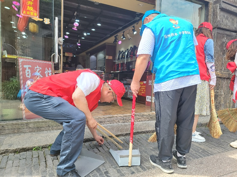 共建活動(dòng)開(kāi)始后,所有黨員合并隊(duì)伍,并分成兩隊(duì)。其中一隊(duì)帶著掃把、簸箕、夾子、垃圾袋,對(duì)東關(guān)街沿街進(jìn)行清掃,不錯(cuò)過(guò)一張紙屑、一個(gè)煙頭、一片落葉;另一隊(duì)的黨員則是走訪沿街商鋪的用戶,詢(xún)問(wèn)用戶商鋪中是否存在用水問(wèn)題,同時(shí)對(duì)沿街水管進(jìn)行測(cè)漏檢查以及對(duì)消防設(shè)施進(jìn)行檢查維護(hù)。