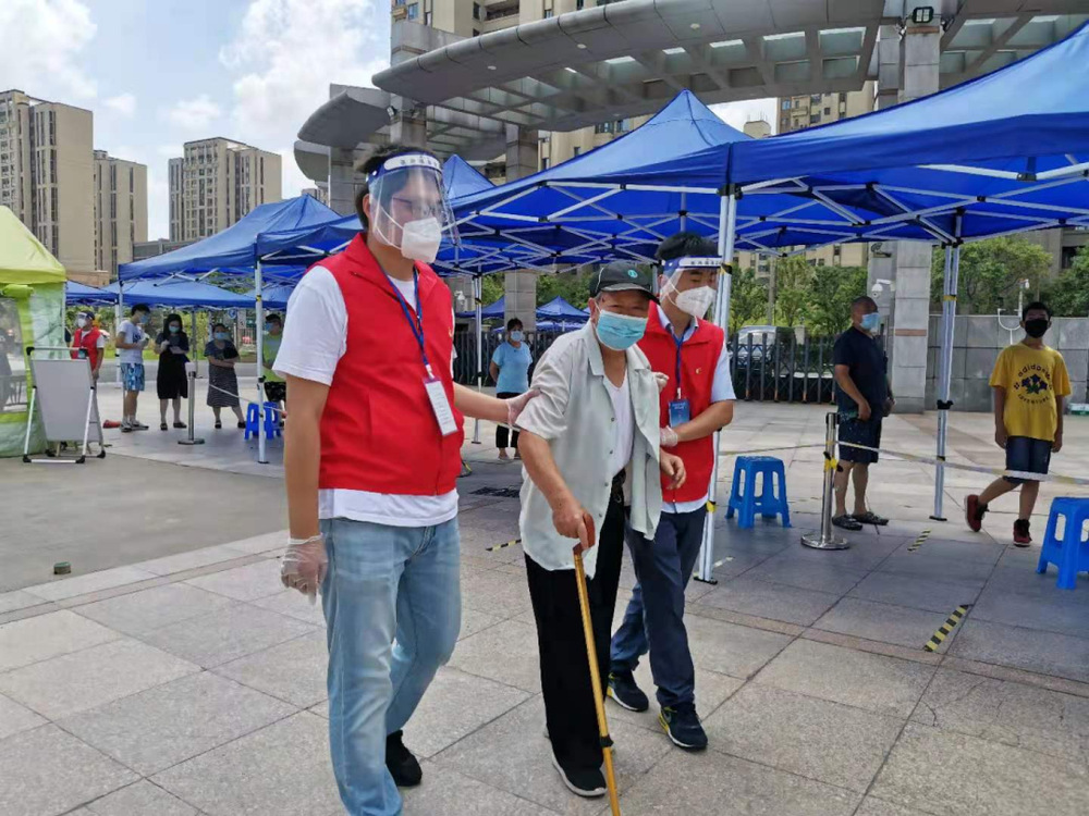 核酸檢測現(xiàn)場,黨員志愿者們堅持讓黨旗飄起來、將身份亮出來、把戰(zhàn)斗堡壘和先鋒模范作用充分發(fā)揮出來,他們有條不紊地引導(dǎo)群眾有序排隊,一遍遍地提醒大家保持安全距離,盡心盡力為居民答疑解惑、安撫情緒,幫助老年人解決行動不便和健康碼查驗等問題,堅持做好支援工作的每一個細(xì)節(jié),確保了轄區(qū)內(nèi)近6000名群眾的核酸檢測工作有序、有效進(jìn)行。