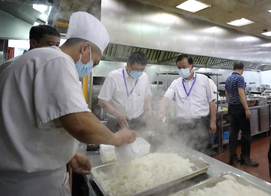檢查過(guò)程中,葉善祥聽(tīng)取了長(zhǎng)樂(lè)客棧負(fù)責(zé)人關(guān)于疫情防控工作匯報(bào),詳細(xì)了解封閉管理期間滯留旅客和防疫人員的住宿和三餐安排,以及他們的核酸檢測(cè)情況。他指出,要落實(shí)好食品安全管理,嚴(yán)把食品安全關(guān),提倡無(wú)接觸收貨,加強(qiáng)庫(kù)存食品安全管理,及時(shí)清理過(guò)期變質(zhì)的食品和原料;要落實(shí)好環(huán)境衛(wèi)生管理,每日做好公共區(qū)域、餐飲區(qū)域消殺,嚴(yán)格餐具衛(wèi)生管理,強(qiáng)化無(wú)接觸送餐,用餐結(jié)束后對(duì)所有餐具進(jìn)行全方位的清潔和消毒;要落實(shí)好人員管理,做好宣傳以及心理疏導(dǎo)工作,切實(shí)關(guān)心封閉管理人員的心理和生活,做好后勤保障。