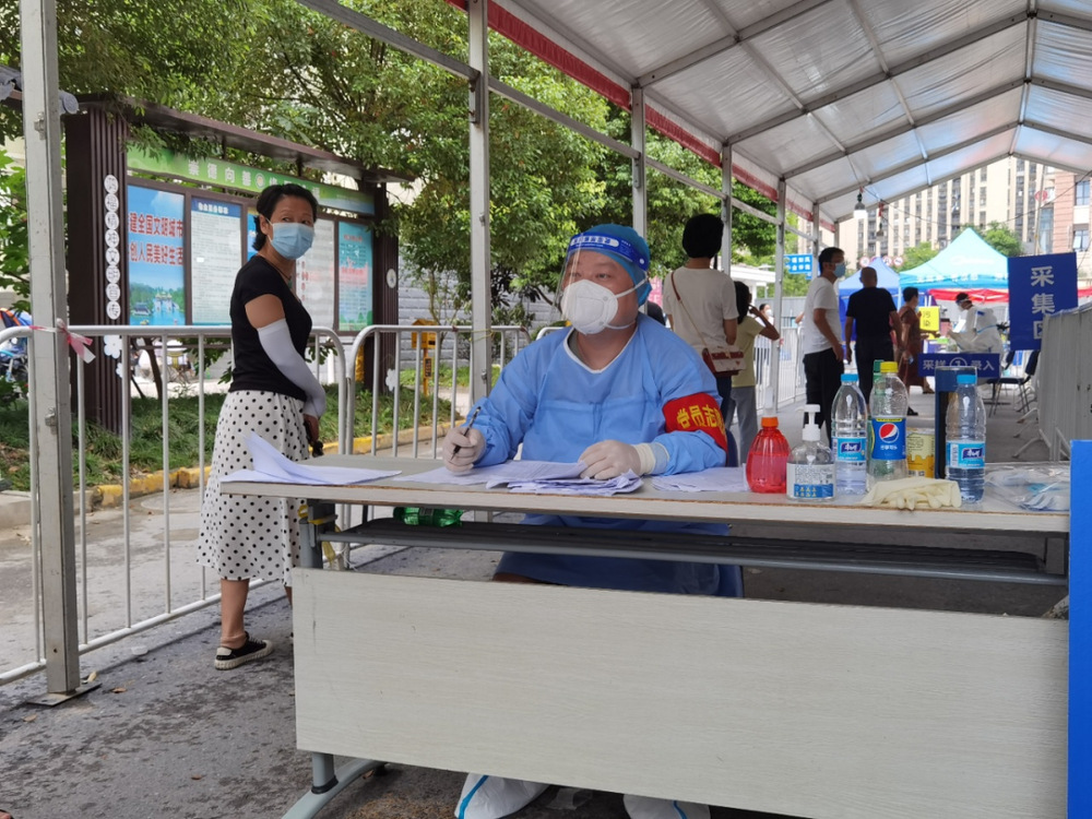 置業(yè)公司張軍,在瘦西湖街道濱湖社區(qū),24小時(shí)在崗值守,查看小區(qū)出入人員健康碼和通行證,并組織核酸檢測和志愿者服務(wù)工作。