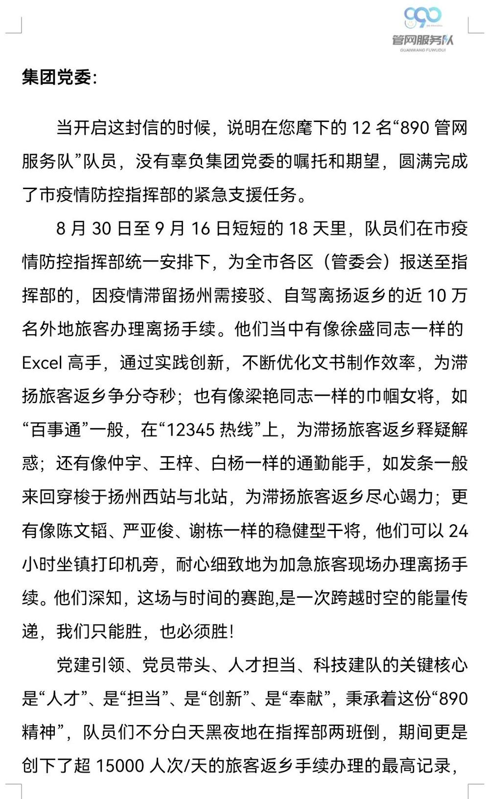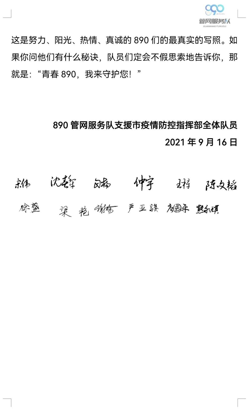 志愿服務(wù)工作結(jié)束后,這12名敬業(yè)而又可愛的志愿者將18天來工作的點(diǎn)點(diǎn)滴滴匯聚成了一封匯報(bào)信,向集團(tuán)黨委匯報(bào)他們不辱使命,用實(shí)際行動(dòng)踐行了“守城衛(wèi)家、城控有我”的鏗鏘誓言,并請(qǐng)集團(tuán)黨委放心,他們將把抗疫精神繼續(xù)延續(xù)到今后的工作中,讓890管網(wǎng)服務(wù)隊(duì)成為民生服務(wù)的金字招牌。