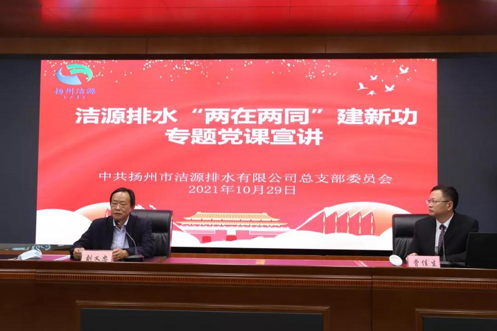 為進(jìn)一步推動黨史學(xué)習(xí)教育深入開展,10月29日下午,潔源排水黨總支組織全體黨員、入黨積極分子及部分群眾代表,在公司五樓會議室組織開展了《“兩在兩同”建新功》專題黨課宣講活動。