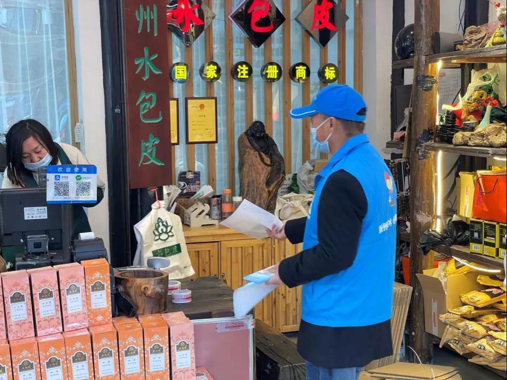 共建活動中,所有黨員混編分成多個小組,部分小組黨員志愿者沿街走訪東關街商戶,為商戶發(fā)放疫情防控宣傳單,提醒商戶在正常經(jīng)營的同時做好常態(tài)化疫情防控;其他黨員志愿者則是向街區(qū)商戶分發(fā)冬季供水防寒保溫的相關資料,宣傳冬季用水設施的防凍保溫知識,同時對街區(qū)內(nèi)的水表、閥門、消防栓等供水設施進行巡查,在水表井內(nèi)敷設保溫棉,確保居民冬季用水安全。
