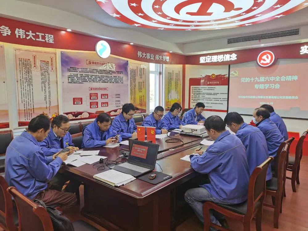 11月19日上午,建盛公司黨支部組織學習貫徹黨的十九屆六中全會精神。公司領導班子成員、中層干部和全體黨員參加學習。