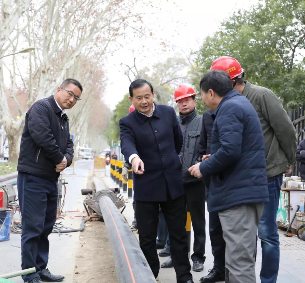 在老舊燃氣管網改造大學南路施工場地,葉善祥查看了管道施工情況,了解項目進展,要求在確保施工安全前提下,小心謹慎規(guī)范作業(yè),妥善做好路面交通的警示和引導,保障施工和交通的同步安全。