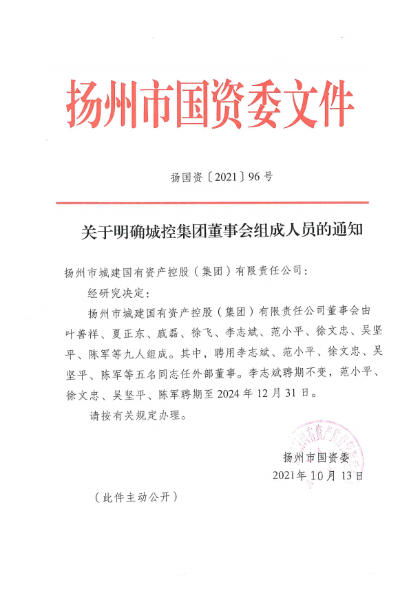 關(guān)于明確城控集團(tuán)董事會(huì)組成人員的通知