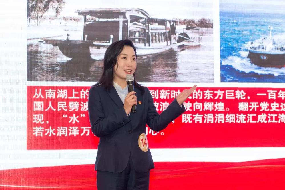 其中,主講人林啟迪用激昂的語言和真摯的情感,通過講述自己親人在抗美援朝戰(zhàn)爭中壯烈犧牲的英勇故事以及言傳身教給孩子播撒紅色信仰的種子,賡續(xù)紅色精神血脈的故事,講述了黨員的信仰信念與忠誠擔(dān)當(dāng),帶來深具感染力的黨課;主講人仇偉結(jié)合長江水務(wù)的歷史,在“小切口”中展現(xiàn)水務(wù)人愛黨、愛國、愛業(yè)的熾熱情懷和斗志昂揚(yáng)、奮發(fā)向上的精神風(fēng)貌的“大主題”,用慷慨激昂、聲情并茂的宣講了建黨百年風(fēng)華。