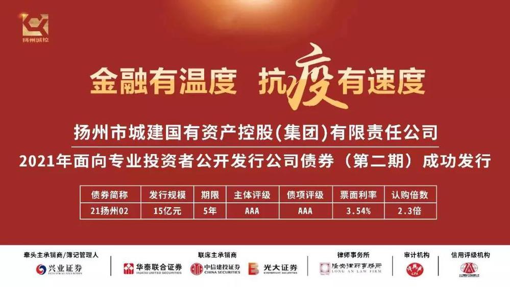 資產(chǎn)總額超過1600億元,注冊資本金增至100億元,綜合實力位列全國城投企業(yè)28強,排名再創(chuàng)新高。全年累計融資104.61億元,疫情期間發(fā)行5年期15億公司債,創(chuàng)集團2017年以來同期限債券發(fā)行利率新低。揚州公用控股集團獲全市首家綠色主體認證企業(yè)。