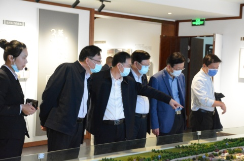 蔣愛(ài)祥一行視察了丁氏馬氏住宅保護(hù)利用和古城保護(hù)成果展示館,觀(guān)看了古城沙盤(pán)和揚(yáng)州古城保護(hù)專(zhuān)題宣傳片,聽(tīng)取了關(guān)于揚(yáng)州古城發(fā)展演變歷史和古城復(fù)興所做的簡(jiǎn)要匯報(bào)。