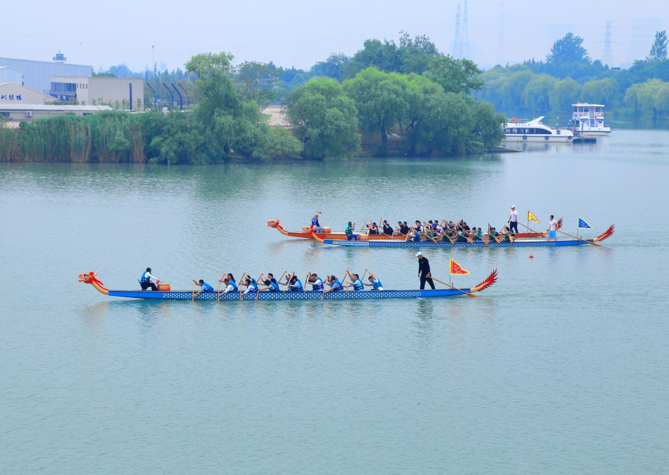 龍舟賽活動現(xiàn)場,葉善祥為每艘賽船龍頭進(jìn)行了點睛后,宣布龍舟賽正式開賽。哨聲響、鼓點起,3支龍舟隊在水面同時競發(fā),選手們各司其職,精神抖擻,整齊劃一的揮動手中的船槳破浪前行。親友團(tuán)在岸邊搖旗吶喊、歡呼鼓掌,湖面浪花飛濺,十分壯觀。經(jīng)過訓(xùn)練賽、250米競速賽,最終三只龍舟都齊心協(xié)力抵達(dá)終點,角逐出了一二三名,集團(tuán)領(lǐng)導(dǎo)為獲獎的各支隊伍頒獎。