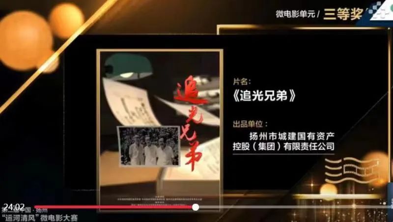 備受關(guān)注的第二屆中國·揚(yáng)州“運(yùn)河清風(fēng)”微電影大賽頒獎(jiǎng)活動(dòng)于6月19日在揚(yáng)州運(yùn)河大劇院舉行。本屆大賽由中國紀(jì)檢監(jiān)察雜志社、江蘇省紀(jì)委監(jiān)委、揚(yáng)州市紀(jì)委監(jiān)委、揚(yáng)州市委宣傳部共同主辦。大賽共征集到參賽作品1600余部,經(jīng)大賽組委會(huì)初評、復(fù)評、終評三輪評審,由城控集團(tuán)拍攝的《追光兄弟》榮獲大賽微電影單元三等獎(jiǎng)。