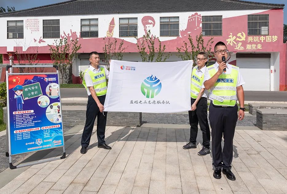 在展館廣場,雙方的退役老兵代表們面對黨旗行莊嚴(yán)軍禮,重唱鏗鏘軍歌,《我是一個兵》《打靶歸來》的高亢旋律響徹云霄,表達(dá)了退役老兵們退伍不褪色、永葆軍人本色,在平凡的崗位上為國家建設(shè)盡綿薄之力的豪邁心情?;顒蝇F(xiàn)場,“藍(lán)焰老兵”還開展了安全使用天然氣專題宣講,發(fā)放天然氣安全使用手冊。
