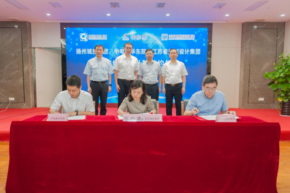 7月27日下午,揚(yáng)州市城建國(guó)有資產(chǎn)控股(集團(tuán))有限責(zé)任公司與央企中國(guó)電建集團(tuán)華東勘測(cè)設(shè)計(jì)研究院有限公司和省企江蘇省規(guī)劃設(shè)計(jì)集團(tuán)有限公司合作組建設(shè)計(jì)院的簽約儀式圓滿(mǎn)完成。揚(yáng)州市政府副秘書(shū)長(zhǎng)林寶榮、城控集團(tuán)黨委書(shū)記、董事長(zhǎng)葉善祥、中電建華東院副總經(jīng)理程開(kāi)宇、江蘇省規(guī)劃設(shè)計(jì)集團(tuán)黨委書(shū)記、董事長(zhǎng)孫曉文出席本次活動(dòng)。