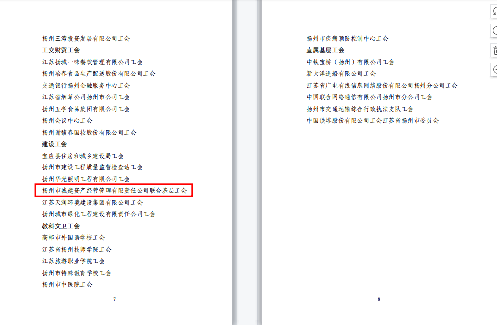 2022年,城建資產(chǎn)聯(lián)合基層工會緊緊圍繞公司年度中心任務(wù),團(tuán)結(jié)帶領(lǐng)廣大干部職工,積極致力于企業(yè)文化建設(shè)發(fā)展,以為職工謀福利為己任,扎實(shí)履行工會職能,關(guān)心關(guān)愛職工身心健康,秉承“干實(shí)事、辦好事、解難事”的宗旨,從“心”出發(fā),真正做職工貼心的“娘家人”。一份耕耘一份收獲,在全體職工齊心協(xié)力的努力下,城建資產(chǎn)聯(lián)合基層工會被揚(yáng)州市總工會授予“揚(yáng)州市模范職工之家”榮譽(yù)稱號。