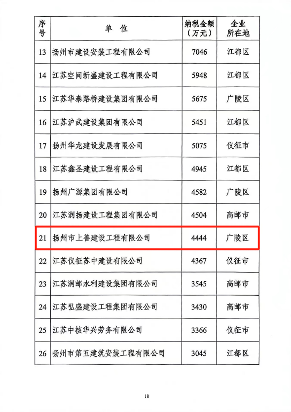 2022年上善公司在面對(duì)疫情防控、經(jīng)濟(jì)下行的嚴(yán)峻形勢(shì)下,按照市委、市政府對(duì)建筑業(yè)企業(yè)總體要求和統(tǒng)一部署,在集團(tuán)黨委堅(jiān)強(qiáng)領(lǐng)導(dǎo)下、上善公司對(duì)標(biāo)先進(jìn)企業(yè)各項(xiàng)指標(biāo),迎難而上、勇毅前行,在諸多領(lǐng)域取得新突破。全年安全生產(chǎn)無事故,無拖欠農(nóng)民工工資,在主體信用評(píng)價(jià)、安全文明施工、企業(yè)榮譽(yù)、品牌建設(shè)等方面均取得了優(yōu)異成績(jī),超額完成了全年產(chǎn)值和入庫稅收指標(biāo),在2021年3600萬元稅收的基礎(chǔ)上,大幅增長(zhǎng)23.44%,2022年納稅達(dá)4444萬元,在全市市政行業(yè)排名第三,全市建筑業(yè)排名第二十一。