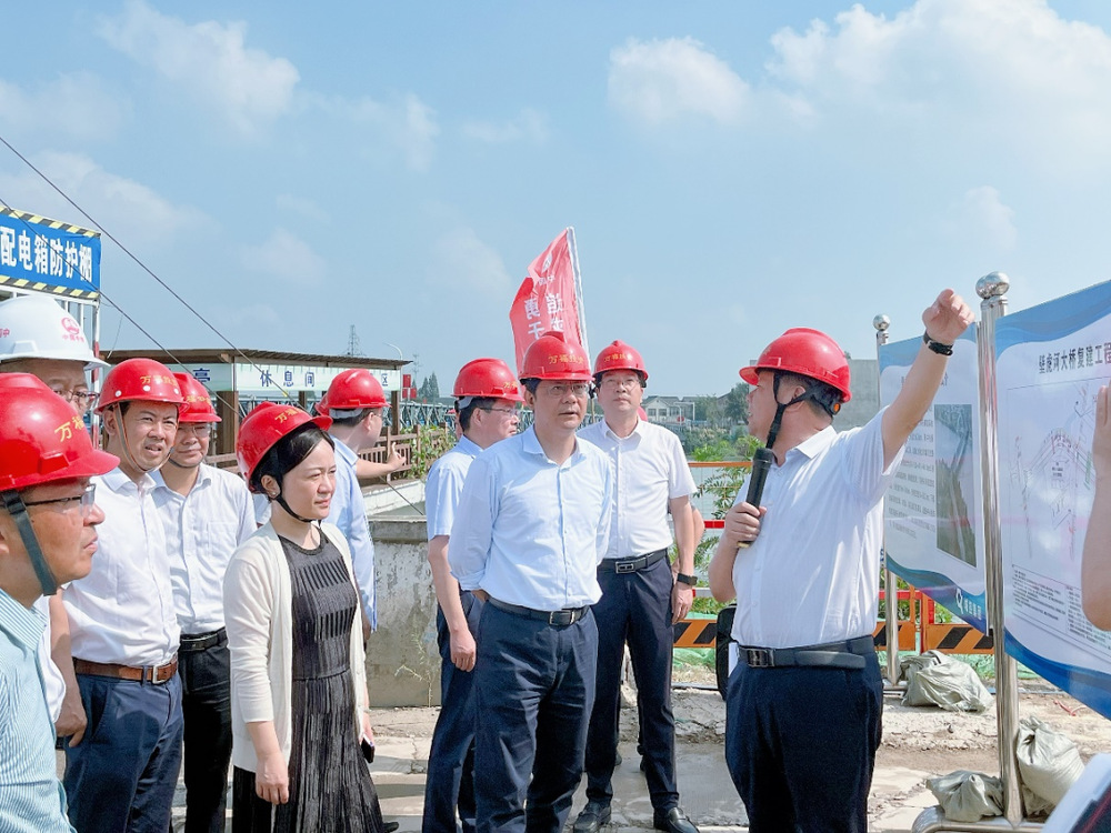 在施工現(xiàn)場(chǎng),王進(jìn)健一行聽取了壁虎河大橋工程、運(yùn)河路北延工程施工進(jìn)度及存在問(wèn)題的匯報(bào)。他強(qiáng)調(diào),城控集團(tuán)要對(duì)照年度目標(biāo)計(jì)劃要求,強(qiáng)化責(zé)任落實(shí),明確目標(biāo)節(jié)點(diǎn),持續(xù)攻堅(jiān)克難,在保證安全質(zhì)量的前提下,全力推動(dòng)項(xiàng)目建設(shè)提速增效,確保項(xiàng)目及早建成投用、早日發(fā)揮效益。