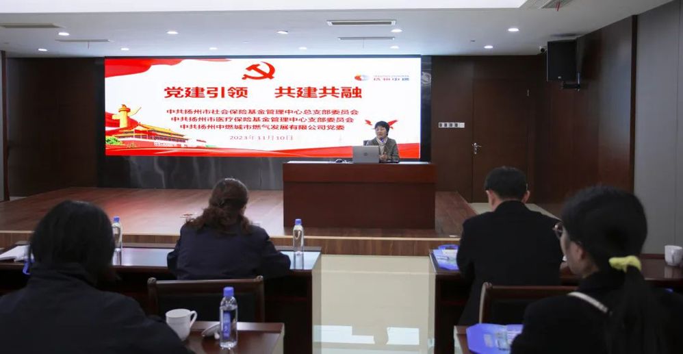 11月10日下午,揚(yáng)州中燃公司黨委與揚(yáng)州社保中心黨總支、醫(yī)保中心黨支部聯(lián)合開展“黨建引領(lǐng) 共建共融”主題黨日活動。共有近40名黨員、干部代表參加活動。