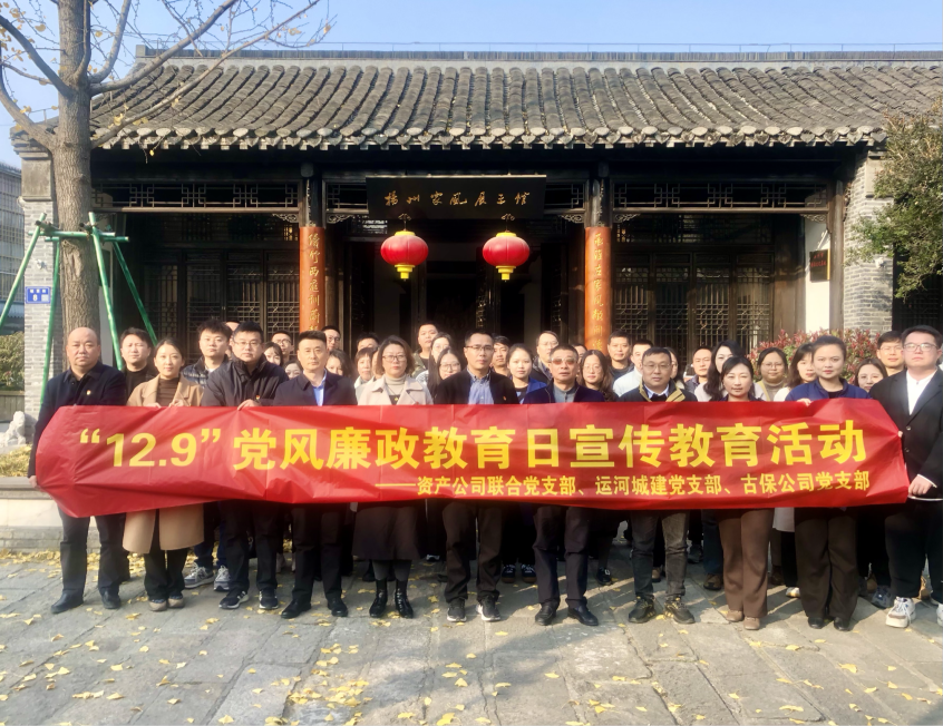 12月6日,資產(chǎn)公司聯(lián)合黨支部、運(yùn)河城建公司黨支部和古保公司黨支部聯(lián)合組織公司黨員、入黨積極分子前往揚(yáng)州阮家祠堂開展“12·9”黨風(fēng)廉政教育日活動(dòng)。