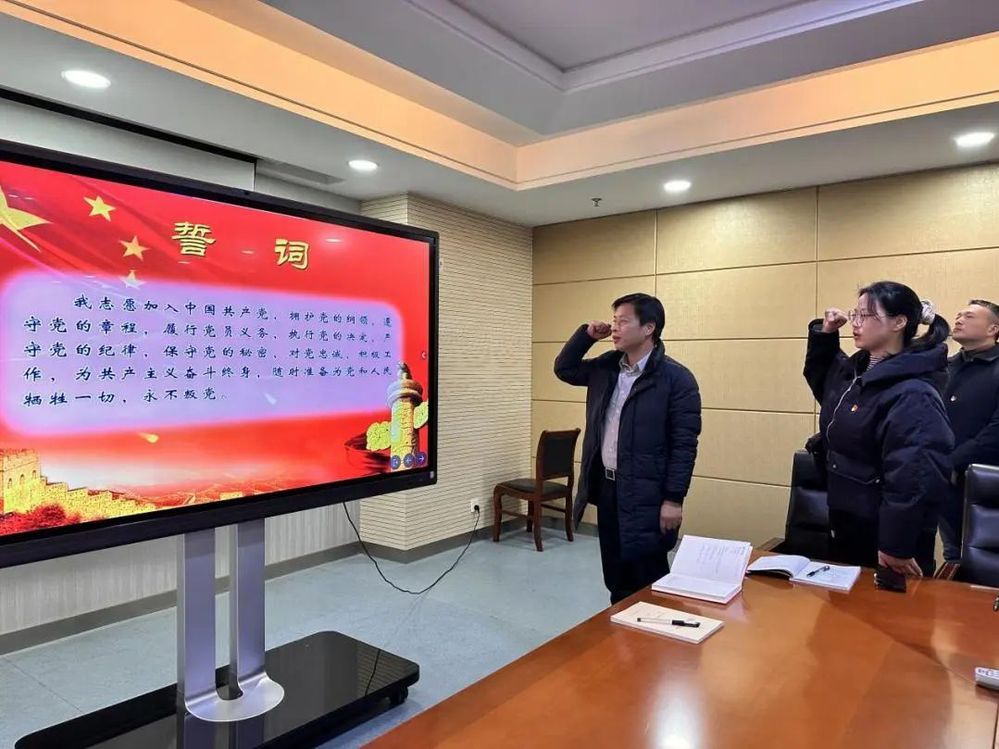 會議還討論了預備黨員轉正事宜。新黨員在支部書記的帶領下,面對黨旗,進行入黨宣誓,全體黨員重溫了入黨誓詞。