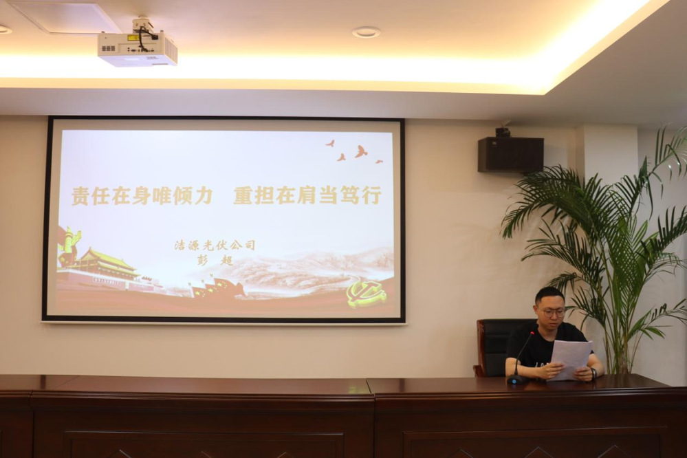 為深入學(xué)習(xí)貫徹習(xí)近平新時(shí)代中國特色社會(huì)主義思想和黨的二十大精神,引導(dǎo)干部職工以講促學(xué)、以學(xué)促干,5月30日下午,潔源光伏公司黨支部組織開展“我是黨課主講人”學(xué)習(xí)宣講活動(dòng),全體黨員參加活動(dòng)。