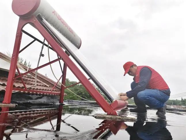 到達現(xiàn)場后,周師傅迅速對太陽能熱水器進行了全面細致的檢查。經(jīng)過一番仔細排查,終于找到了問題的根源——原來是熱水器上的硅膠圈因長期使用而老化,導(dǎo)致了漏水現(xiàn)象。周廣才師傅沒有片刻耽擱,立即著手進行修復(fù)工作。他熟練地更換了老化的硅膠圈,并對熱水器整體進行了檢查和維護,確保徹底解決漏水問題。維修后,吳留毅隊長耐心細致地向吳大爺科普了供水小常識,遞上了“561”供水服務(wù)卡片,并告知老人若遇到用水難題,可直接聯(lián)系卡片上的電話,讓老人感到十分安心??吹綗崴鞑辉俾┧?,吳大爺?shù)哪樕下冻隽诵θ?,他緊緊握住吳留毅和周廣才師傅的手,連聲道謝:“真是太感謝你們了!這么熱的天,還特地跑來幫我解決問題,有你們這樣的服務(wù)隊,我們老百姓真是有福氣啊!”。