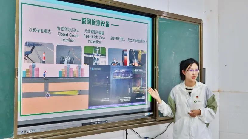 接著,890管網(wǎng)服務(wù)隊(duì)的“管道醫(yī)生”通過介紹和操作管網(wǎng)檢測(cè)設(shè)備,使學(xué)生們直觀地認(rèn)識(shí)到這些“醫(yī)療設(shè)備”在市政雨、污水管網(wǎng)缺陷排查和診斷中的重要作用。
