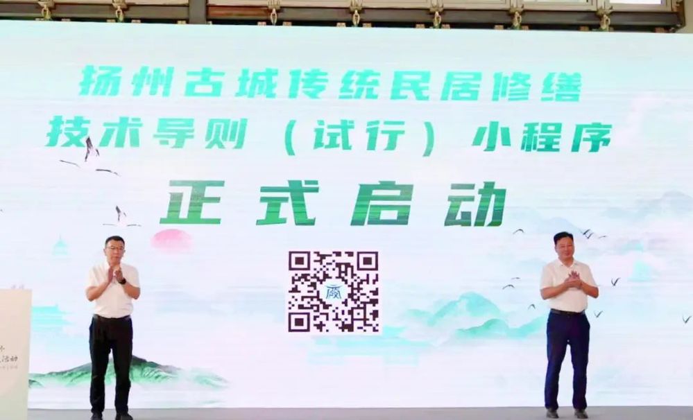 活動中,通過城市更新宣傳視頻和多樣的研學(xué)路線的發(fā)布,嘉賓直觀地感受到了揚州古城的新變化與新活力。隨后,現(xiàn)場正式發(fā)布古城傳統(tǒng)民居修繕技術(shù)導(dǎo)則小程序(試行版)為古城的修繕提供了科學(xué)規(guī)范的指導(dǎo)。