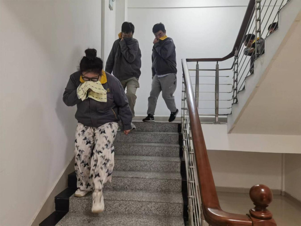 隨著警報(bào)聲響起,演練正式開(kāi)始。全體參演人員迅速進(jìn)入應(yīng)急狀態(tài),按照既定的疏散路線開(kāi)始疏散,在各部門(mén)疏散組織者的指揮下,全體員工用濕毛巾和衣物捂住口鼻,彎腰低姿,快速而有序地撤離辦公樓,沿著指定的疏散路線向安全集合點(diǎn)前進(jìn)。在規(guī)定的時(shí)間內(nèi)到達(dá)安全集合點(diǎn)后,各部門(mén)疏散組織者迅速清點(diǎn)人數(shù),并向演練總指揮報(bào)告情況,整個(gè)疏散過(guò)程緊張有序,按預(yù)定方案完成演練。演練活動(dòng)結(jié)束后,演練總指揮做了總結(jié)和點(diǎn)評(píng),鞏固提高此次疏散逃生演練活動(dòng)的效果。