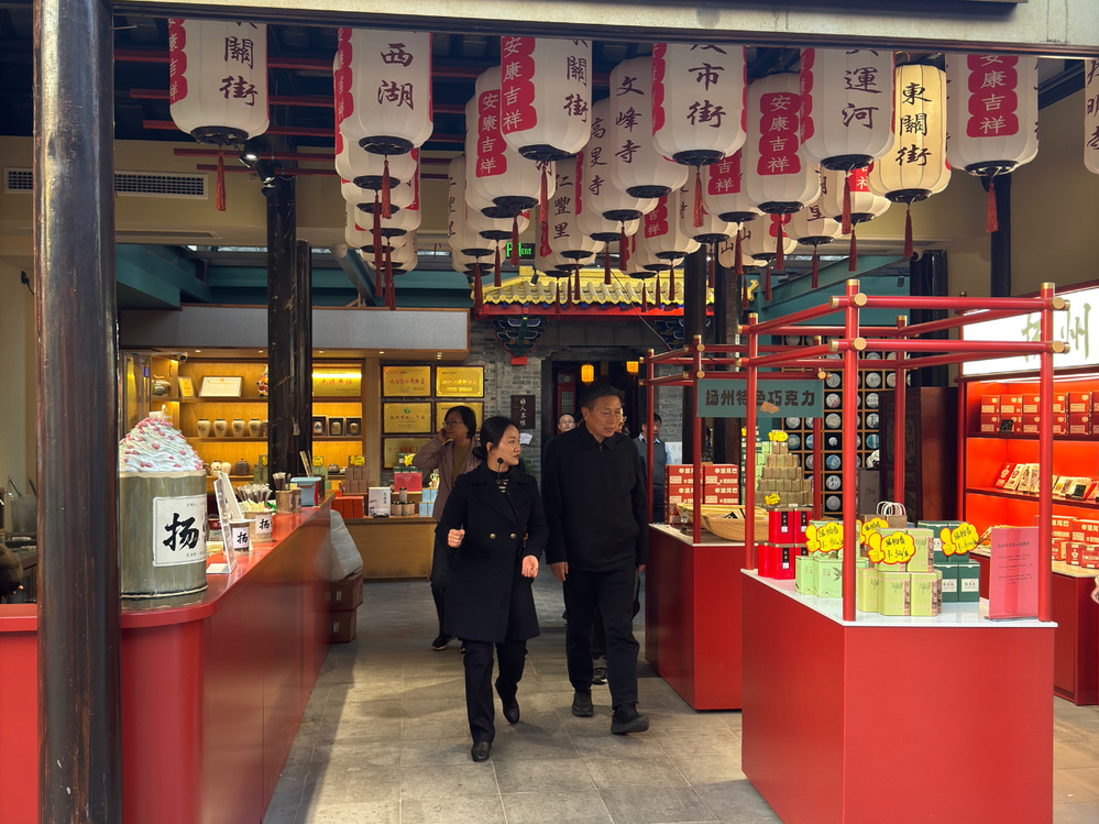 李保國一行沿東關(guān)古街,實(shí)地察看周邊風(fēng)貌,了解街區(qū)歷史沿革、文旅資源保護(hù)開發(fā)及公房活化利用等情況,深入冬榮園、謝馥春、街南書屋、揚(yáng)州漆器廠、“花筑”民宿等店鋪商家,聽取情況介紹,詳細(xì)了解街區(qū)招商、老字號傳承、文商旅產(chǎn)業(yè)融合及資產(chǎn)活化利用等所取得的成效,并對揚(yáng)州城控集團(tuán)堅(jiān)持保護(hù)與利用、改造與復(fù)興、傳承與發(fā)展相結(jié)合理念,扎實(shí)推進(jìn)古城項(xiàng)目建設(shè)和經(jīng)營管理方面取得的成績予以了充分肯定。