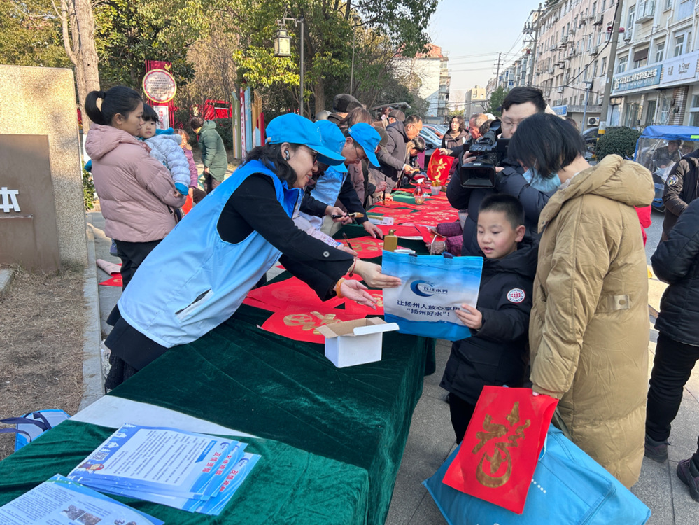 活動(dòng)當(dāng)天,長(zhǎng)江水務(wù)公司第六黨支部“水質(zhì)安全衛(wèi)士”志愿者們?cè)缭鐏?lái)到寶帶社區(qū)中心廣場(chǎng),準(zhǔn)備好紅紙和筆墨紙硯,現(xiàn)場(chǎng)揮毫潑墨,筆鋒婉轉(zhuǎn),書(shū)寫(xiě)了一幅幅寓意吉祥的“?!弊炙偷骄用袷种??;顒?dòng)現(xiàn)場(chǎng)墨香四溢、熱鬧非凡,洋溢著喜慶的節(jié)日氣氛?;顒?dòng)過(guò)程中,“水質(zhì)安全衛(wèi)士”志愿者們還向居民們發(fā)放了冬季用水防凍保溫宣傳單,提醒大家低溫冰凍天氣保護(hù)用水設(shè)施,安全安心用水。