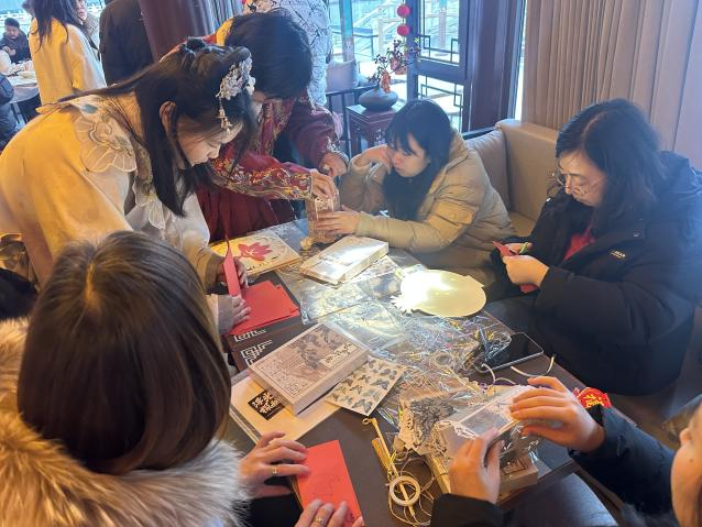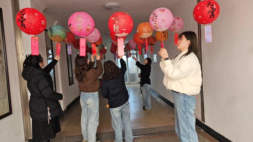“慶元宵”現(xiàn)場(chǎng),工作人員早早備好糯米粉、餡料以及鍋具等必需品,在了解制作方法和注意事項(xiàng)后,大家挽起袖子上陣,你和面、我包餡,一邊包著湯圓,一邊聊著元宵節(jié)的習(xí)俗。隨著一雙雙巧手揉、搓技藝施展下,一個(gè)個(gè)白胖胖的元宵被排列整齊,祝愿著新的一年“福氣滾滾來(lái)”?!安聼糁i”是一項(xiàng)歷史悠久、趣味性強(qiáng)的傳統(tǒng)民俗。在猜燈謎現(xiàn)場(chǎng),大紅燈籠一個(gè)個(gè)高高掛起,一條條燈謎懸掛在燈籠之下,隨著主持人介紹讀題,一場(chǎng)“頭腦風(fēng)暴”正式拉開帷幕,大伙兒你一言、我一語(yǔ),互相提示和討論,燈謎答案最終被成功揭曉,答題正確者可將手中謎題兌換成手工花燈,大家在猜燈謎的活動(dòng)中體驗(yàn)著別樣的樂(lè)趣。