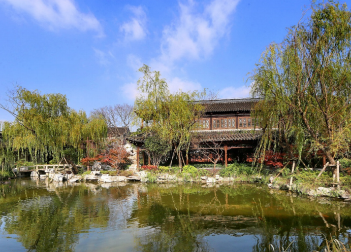 這座浸透鹽霜的宅院,枕著古運(yùn)河的千年濤聲,在煙花三月里舒展著它最溫柔的眉眼。雕花槅扇濾進(jìn)來的風(fēng)帶著瓊花的清芬,天井里的紫藤正沿著老磚墻攀爬,在廊檐下織出半面流動(dòng)的紫瀑布??头棵弧皞€(gè)園春曉”,推窗便能望見個(gè)園的竹影婆娑,案頭擺著青花瓷瓶,斜插著幾枝帶露的垂絲海棠。