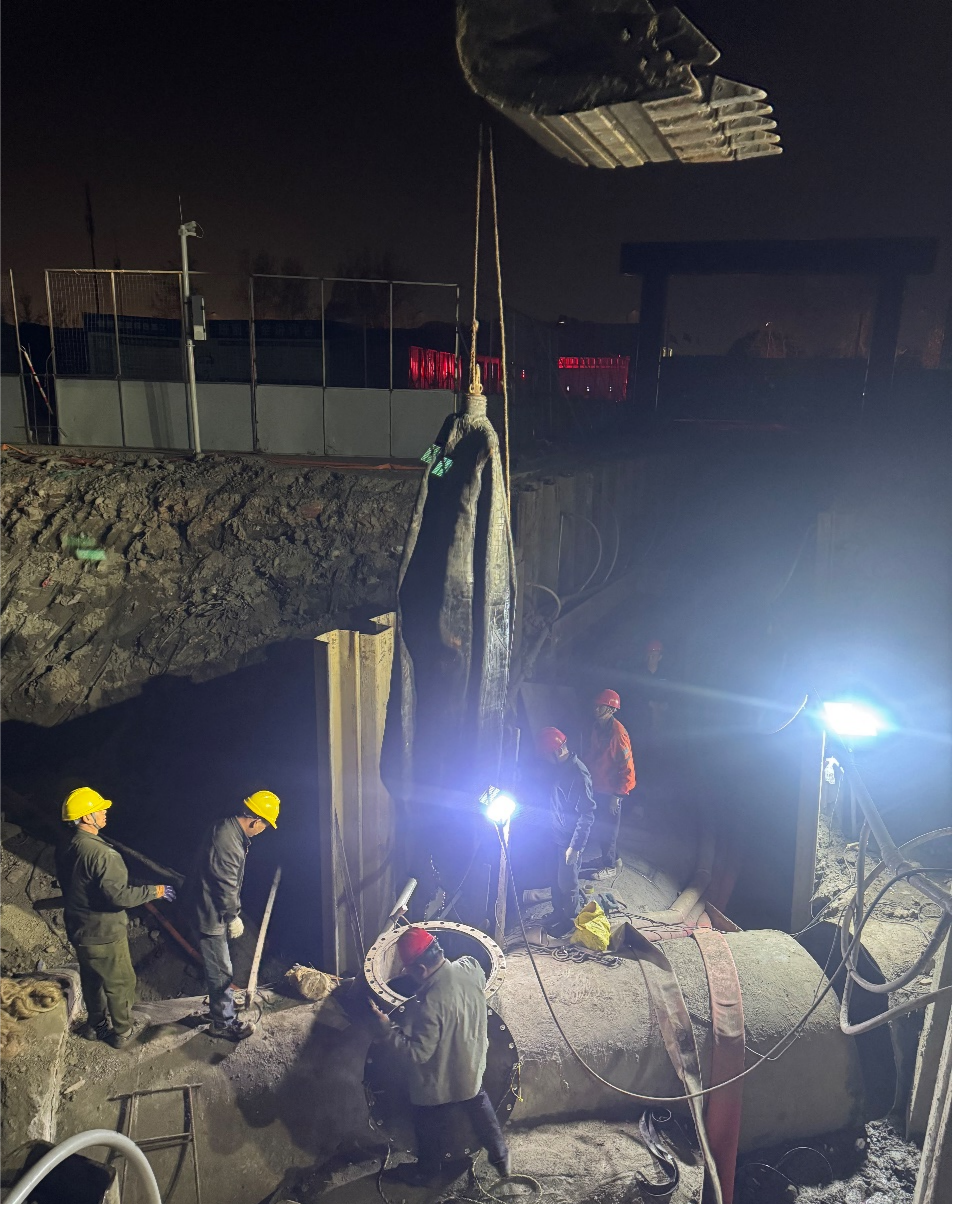 作為保障汛期排水系統(tǒng)穩(wěn)定的核心環(huán)節(jié),施工需在不停產(chǎn)、不影響污水處理的前提下完成導(dǎo)流切換,同時(shí)涉及高水位作業(yè)、夜間施工及生態(tài)保護(hù)等要求。在此情況下,公司高度重視,聯(lián)合設(shè)計(jì)單位、上善公司及市政管網(wǎng)公司成立專項(xiàng)工作組,召開(kāi)多輪技術(shù)論證會(huì),創(chuàng)新制定了“分段導(dǎo)流+動(dòng)態(tài)調(diào)控+雙保險(xiǎn)封堵”的施工方案,并調(diào)集精銳施工力量,提前部署應(yīng)急物資,組織專業(yè)潛水團(tuán)隊(duì),實(shí)施對(duì)管道流量、水質(zhì)及周邊環(huán)境進(jìn)行無(wú)間斷監(jiān)控,以“分鐘”為單位倒排工期,確保施工全程安全可控。