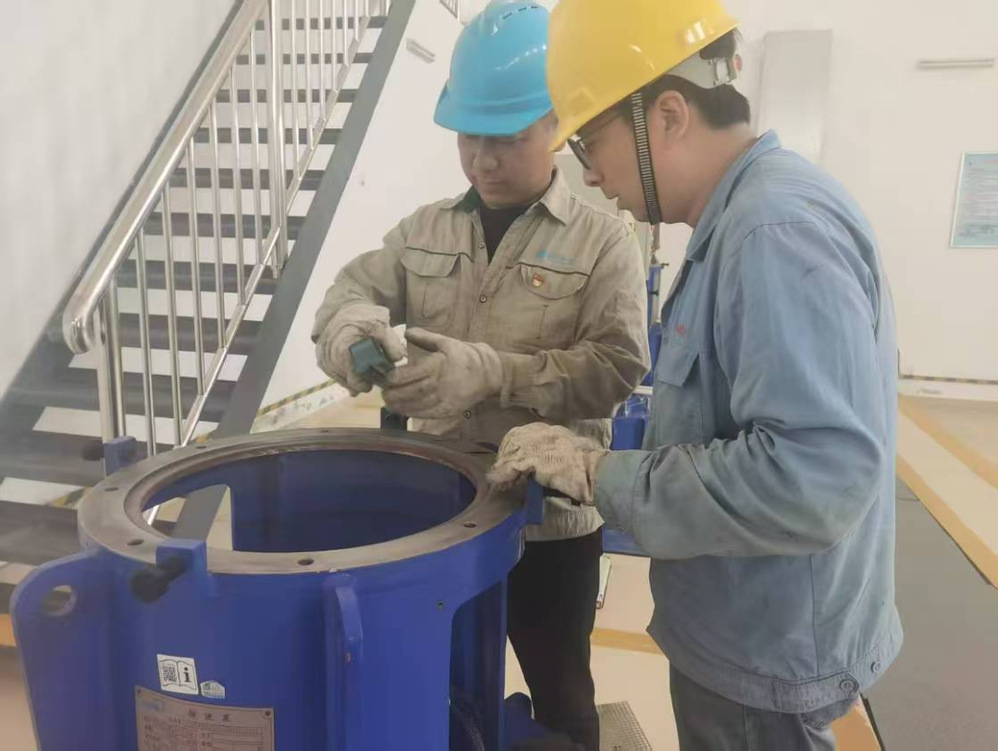 2025年4月初,湖西水廠碳濾池2號提升泵突發(fā)劇烈振動故障。朱俊率領應急搶修組立刻馳援,驅(qū)車百余公里抵達現(xiàn)場后,運用水平儀開展全面動態(tài)檢測分析,結(jié)合多年技術經(jīng)驗鎖定設備隱患點。經(jīng)3天連續(xù)高強度作業(yè),成功實施基礎加固與動平衡校正,避免了一起重大停水事故,保障了片區(qū)內(nèi)居民用水安全。