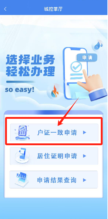 選擇“戶證一致申請”模塊,選擇辦理業(yè)務(wù)。